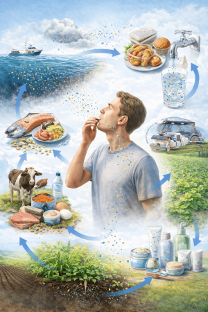 “먹는 게 제일 크겠지?”라고 생각하기 쉬운데, 요즘 리뷰들은 **흡입(호흡)**도 중요한 경로로 자주 언급해요. 특히 실내 공기요. ScienceDirect+2Nature+2